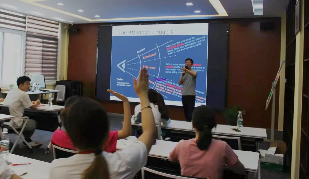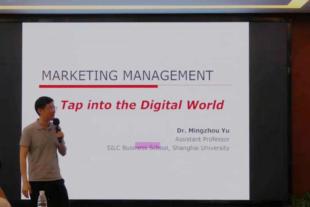 7月12日上午的课程名称为“Digitalization of Marketing”,授课者为俞明舟教授,他是西澳大利亚大学的博士毕业生,曾经在碧桂园集团和旭辉银行担任过总监,具有丰富的市场营销经验。课程共计六个课时,今天学员们已完成四个课时,它们的内容小标题分别是“Grabbing attention in a widing market”、“Accessing your market”、“Maximizing your mark”以及“Driving people to you”。