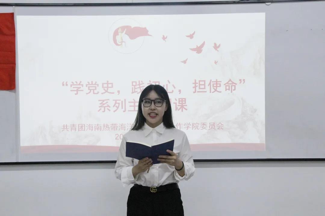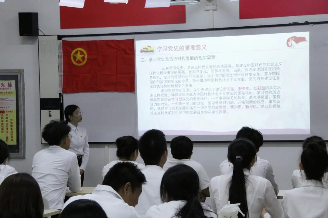 本次学党史活动分为两部分,第一部分为党史学习教育和学习讲解,第二部分为党史百题问答竞赛。团委组织发展部干事白静在台上为我们讲解了学习党史的重要意义和党史的发展脉络,呼吁我们青年不忘初心,担当使命,以昂扬奋斗的姿态投身社会主义现代化强国建设的实践中。