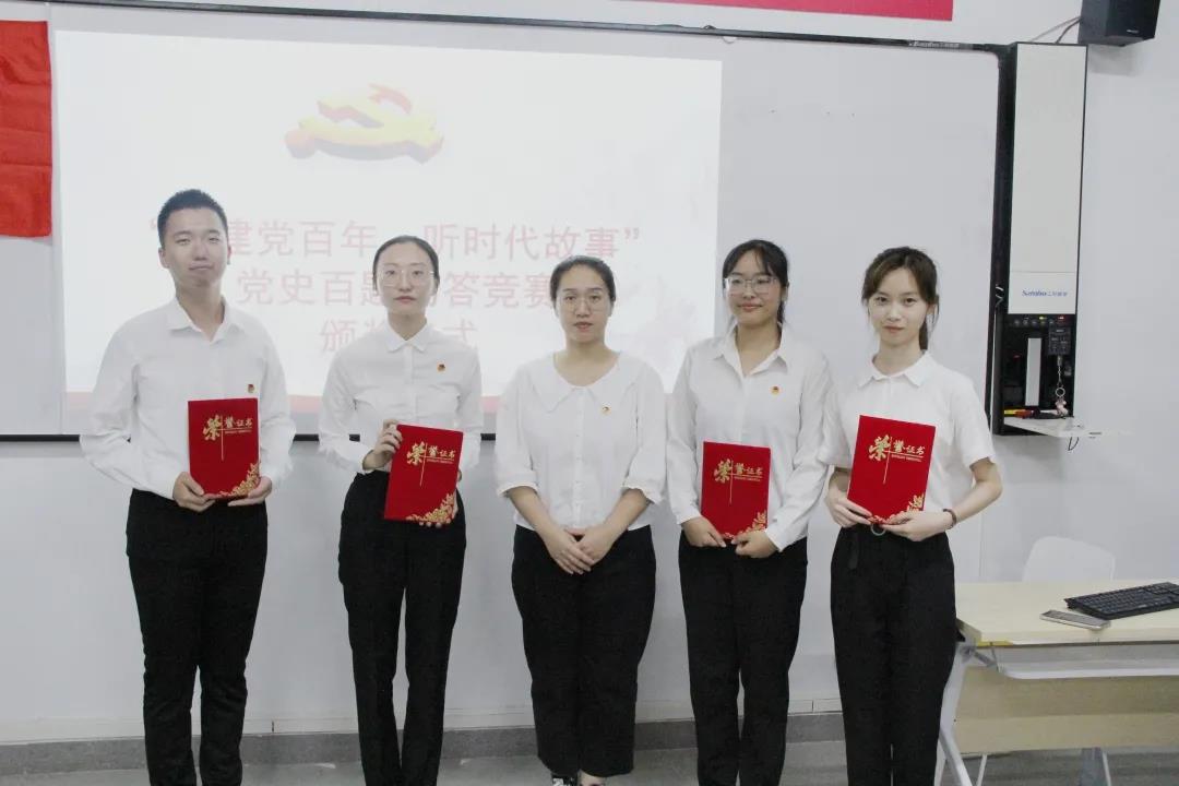 党史竞赛现场,员工干部和团员代表们踊跃举手抢答,竞争气氛十分激烈。比赛结束,王舒瑶和崔苪嘉两位同学获得“党史抢答能手”称号。钱峥宇和朱晗璐两位同学可谓“文武双全”,两位都同时获得了“党史抢答能手”和“党史答题达人”的称号。