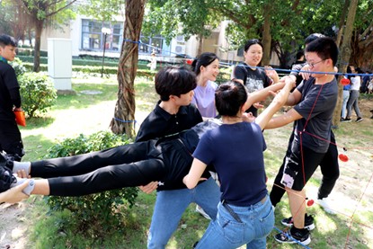 本次心理素质拓展活动的目的是激发员工的团队合作意识和拼搏向上的精神,缓解负面情绪,释放学业压力,增进朋辈友谊。活动前,活动教练对参与者宣讲了拓展活动的目标、意义和要求,激发大家对活动的期待和预期。接着通过热身活动和破冰游戏,让大家放松身心、敞开心扉、增进了解。再通过分组,开展团队文化建设,用队名、队歌、口号和标识等符号系统确立成员的集体感和归属感。然后在各组之间,开展了三项富有竞赛性、挑战性、合作性和技巧性的游戏活动,通过成员互动进一步强化成员的团队意识,激发团队内部的动力,释放紧张学习带来的压力。活动结束后,组织了小组内分享,彼此畅谈个人在活动中获得的体验和感悟。同学们通过参加这些协作性和挑战性活动,意识到只有依靠合作才能达成团队目标,只有真诚和奉献才能建立与他人的信任关系。