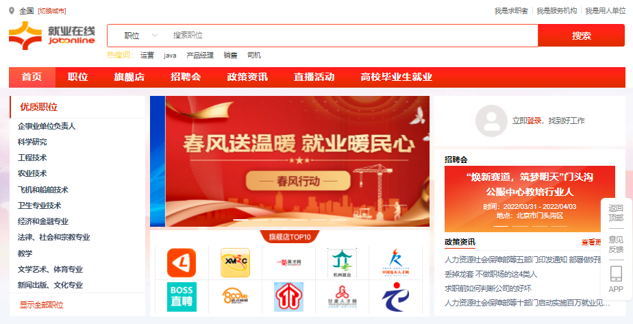 国家级招聘求职服务平台,可以在这里完成从创建、编辑、修改、投递简历到查询面试、入职信息等找工作全流程。