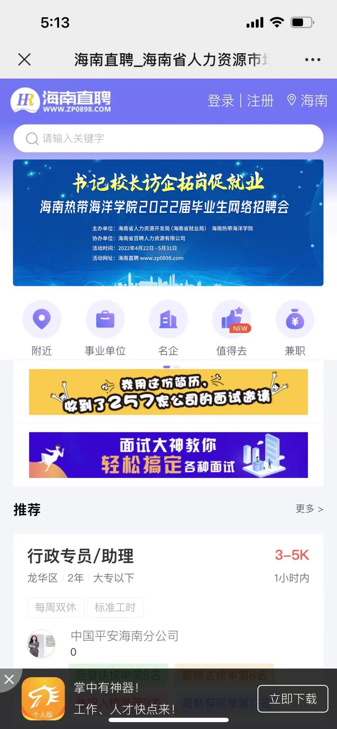 如果在网络招聘会中没有挑选到自己心仪的岗位,可以返回海南直聘网(www.zp0898.com)首页,这里有更多的单位及分类职位,点击浏览职位,直接投递简历申请面试就可以啦。